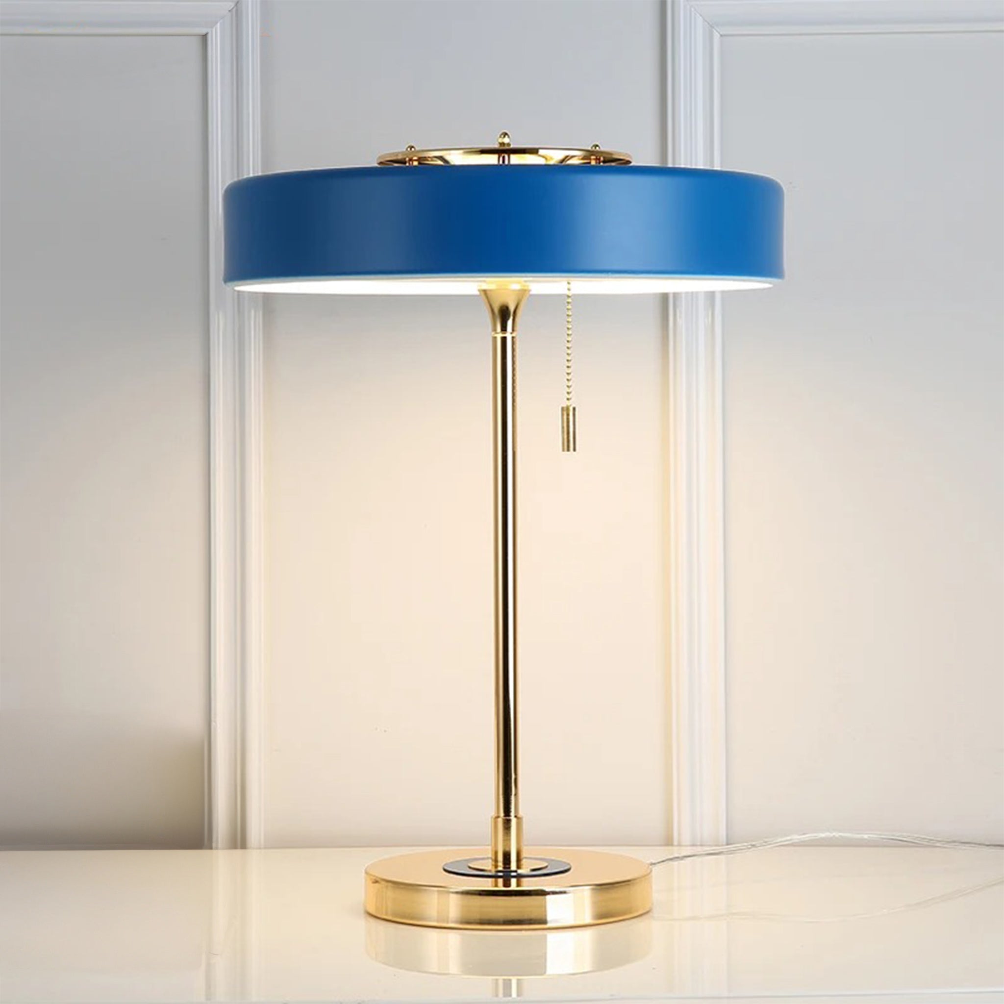 Moderner und luxuriöser Stil : blauer Lampenschirm + goldener Metallsockel